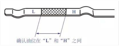 · 插入機(jī)油尺,確認(rèn)發(fā)動(dòng)機(jī)機(jī)油液位在如下圖所示的范圍內(nèi)。