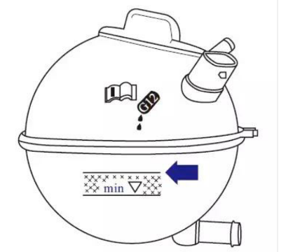 檢查冷卻液的液面位置。冷卻液的液面位置應(yīng)在低和滿兩條標(biāo)記線之間。如果液面位置低,則應(yīng)檢查是否有滲漏,并添加冷卻液至上標(biāo)記線位置。