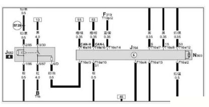 2. 檢查J682 繼電器至J764 控制單元線路、針腳無(wú)異常。