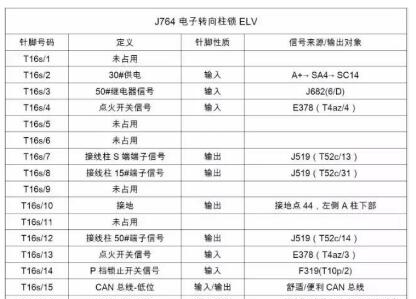 新帕薩特高配車型上裝備了電子轉(zhuǎn)向柱鎖(ELV),在線路端子輸出、方向盤鎖等控制上與以往傳統(tǒng)的機(jī)械點(diǎn)火方式有很大差別,現(xiàn)對(duì)ELV 的電路進(jìn)行簡(jiǎn)要分析如下: