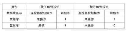 對(duì)遙控進(jìn)行同步(先按遙控鑰匙上的解鎖按鈕,然后在一分鐘內(nèi)用鑰匙頭將汽車解鎖),無(wú)效。讀取 BCM 數(shù)據(jù)塊檢查控制器是否收到遙控器信號(hào),發(fā)現(xiàn)按下遙控鑰匙時(shí),“ 遙控器按鈕操作” 顯示“ 未操作” ,鑰匙號(hào)顯示為“ 1” ,松開(kāi)鑰匙后保持為“ 1” ,不正常。