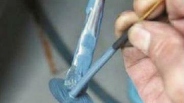 ③ 貼上膠片 將打磨的地方涂抹上膠水,貼上專用的火補膠片。
