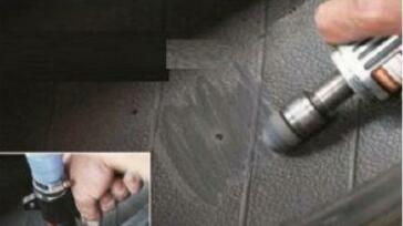 ③ 打磨吸塵 將輪胎內(nèi)壁被扎的部分進行打磨吸塵。注意:在打磨的時候不要損壞輪胎的簾布層。