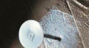 ④ 穿入“蘑菇釘” 將“蘑菇釘”從內(nèi)側(cè)穿入破損處,使其頂端從外側(cè)穿出。