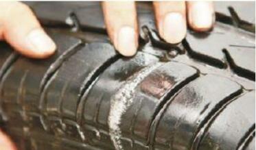 ⑤ 熱補完成 熱補成功后整個膠片已經(jīng)和輪胎成為一體;裝上輪胎,檢查漏氣部位是否泄漏。注意:調(diào)整輪胎氣壓后做動平衡。