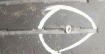 ① 做好標(biāo)記 拆下輪胎,并在被扎的部位做好標(biāo)記。