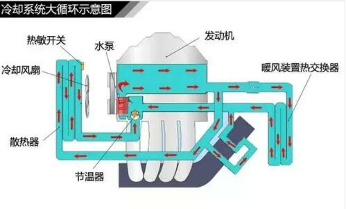 冷卻系統(tǒng)的作用是使發(fā)動(dòng)機(jī)保持在適當(dāng)?shù)臏囟认鹿ぷ?。發(fā)動(dòng)機(jī)燃燒室內(nèi)混合氣燃燒后會(huì)產(chǎn)生高溫高壓的燃?xì)猓s為800~2000℃),所以必須對(duì)汽缸加以冷卻,否則其中的運(yùn)動(dòng)件受熱膨脹而導(dǎo)致正常間隙減小,機(jī)械強(qiáng)度降低。如果冷卻過(guò)度也會(huì)造成汽缸充氣量減少、燃燒不正常、功率下降、油耗增加及潤(rùn)滑不良等影響。