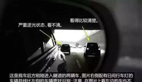 其實關于日行燈的好處沒必要多說;鄙人喜歡舉例子,因為實際的例子更容易讓我們看出問題;如上圖所示,這就是當我們駕車出行剛進入隧道的時候,圖片上的內(nèi)容是通過后視鏡觀測到的情況;由于剛進入隧道,視覺神經(jīng)難免會出現(xiàn)一定程度的不適應,而在隧道中面對逆光的情況,會導致我們通過后視鏡的視物能力出現(xiàn)下降;圖上兩個箭頭指示車輛,一輛配有日行燈、一輛沒有,通過后視鏡我們可以更加容易的發(fā)現(xiàn)配有日行燈的車輛,而這種狀態(tài)下對于沒有日行燈的車輛反應并不敏感;此處可以對比的就是即便沒有日行燈,我們依然可以發(fā)現(xiàn)后方車輛,只不過時間要長一些、因為視神經(jīng)需要適應,而配有日行燈的車輛可以被更迅速的發(fā)現(xiàn),搶出的這幾秒在一些特殊情況下或許能挽救一條命!