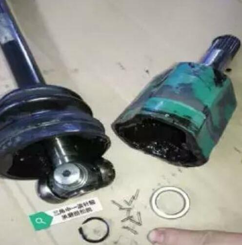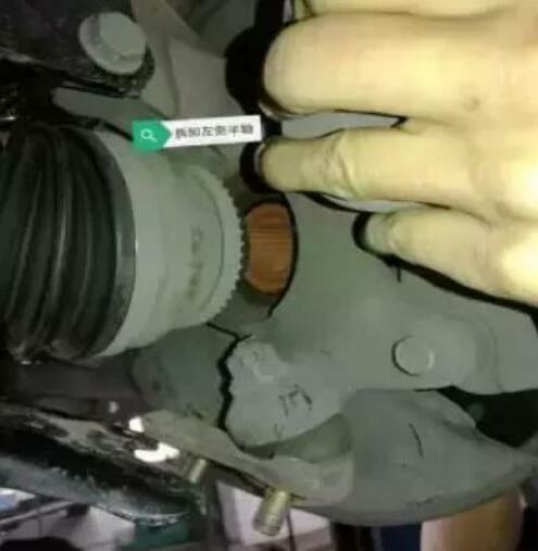 因?yàn)榇斯收吓c車(chē)速高低密切相關(guān),懷疑是驅(qū)動(dòng)橋的半軸問(wèn)題。該車(chē)采取普通獨(dú)立懸架形式,半軸的兩端帶有花鍵軸頭,內(nèi)插接差速器的半軸花鍵套,外接輪轂中心的花鍵套。半軸兩端有內(nèi)外兩個(gè)萬(wàn)向節(jié),外端采取等速的球籠式萬(wàn)向節(jié),內(nèi)端為三銷(xiāo)軸式連軸節(jié)。