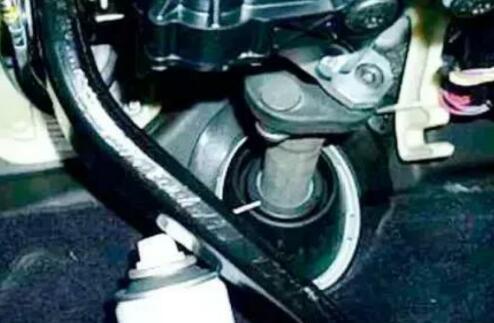 解決措施:使用BMW通用潤滑噴劑,對(duì)防塵套和轉(zhuǎn)向軸上的塑料密封圈進(jìn)行潤滑,在操作時(shí)需要從發(fā)動(dòng)機(jī)側(cè)和車內(nèi)分別進(jìn)行潤滑。具體的操作步驟如下: