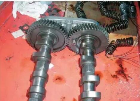 新的缸蓋,舊的氣門,氣門研磨好了之后,先不裝氣門油封,裝上氣門彈簧、挺桿和凸輪軸,再檢查氣門間隙,如表2所示。這個氣門間隙有點大了,過大的氣門間隙會導(dǎo)致發(fā)動機氣門響,但是燃?xì)獾陌l(fā)動機在進(jìn)氣的時候吸入汽缸的天然氣和空氣的混合氣,兩種都是氣態(tài)的,并且燃?xì)獾臏囟群桶l(fā)動機的溫度相同,這樣燃燒室在進(jìn)氣的時候就得不到混合氣的冷卻降溫,尤其是排氣門,始終處于一種高溫的工作環(huán)境,然而其門口的材質(zhì)要比氣門的材質(zhì)差很多,因此,排氣門的氣門口磨損就特別的嚴(yán)重,這次故意把氣門間隙留的大很多,就是為了讓發(fā)動機能夠行駛的里程多一些。