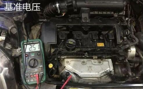 找出基準電壓(對地電壓)并不是什么難事,首先要排除加熱線電壓,加熱線電壓是12V比較好判斷,小于0.2V的就是加熱線的地線了。剩下的4根線其實是3根線,有兩根線是整合到了一起。逐個排除即可。在經(jīng)過測量之后發(fā)現(xiàn),這臺MINI的前氧對地電壓為2.5v。