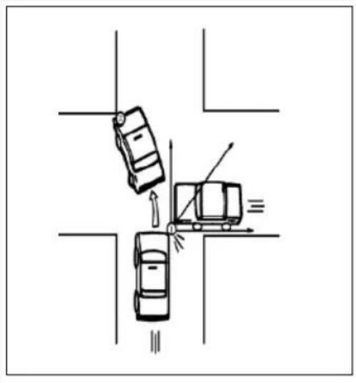 實(shí)際碰撞中,兩車(chē)的相撞會(huì)產(chǎn)生不同損傷類(lèi)型的組合(圖1)。 車(chē)身維修人員在損傷評(píng)估之前,應(yīng)盡可能多地通過(guò)車(chē)主了解事故 實(shí)際發(fā)生的真實(shí)過(guò)程。 圖1 車(chē)身發(fā)生多次碰撞圖