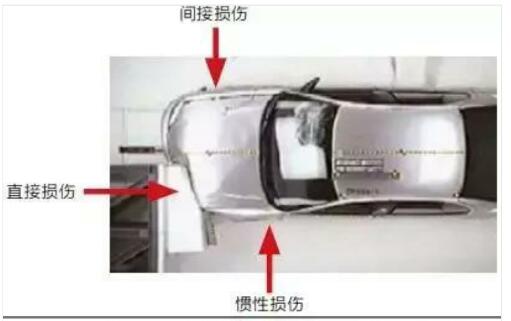 當(dāng)汽車(chē)受到碰撞時(shí),質(zhì)量大的部件(如發(fā)動(dòng)機(jī))的慣性會(huì)使其 向相反方向移動(dòng)而發(fā)生沖擊,產(chǎn)生慣性損傷,故需對(duì)固定件、周 圍部件及板件進(jìn)行檢查,當(dāng)然精確的損傷評(píng)估還要靠精確的車(chē)身 三維測(cè)量來(lái)確定。