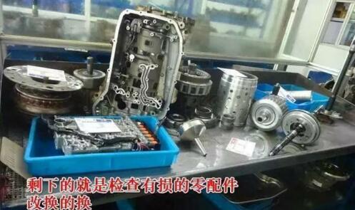 解體 檢測到這里,我們也已經(jīng)到了這個變速箱的故障所在——閥體磨損嚴(yán)重導(dǎo)致的變速箱油壓升降不穩(wěn)定,故而頓挫很嚴(yán)重。其次閥體上有兩個電磁閥損壞,導(dǎo)致倒檔入檔沖擊,外加這款變速箱最常見的損壞部位——多檔位開關(guān)(差不多一半以上這款變速箱都會這個部件壞掉),所以接下來的維修方案就是更換閥體,更換兩個電磁閥,更換多檔位看開關(guān),另有部分摩擦片磨損嚴(yán)重,部分活塞有老化現(xiàn)象都需要部分更換。
