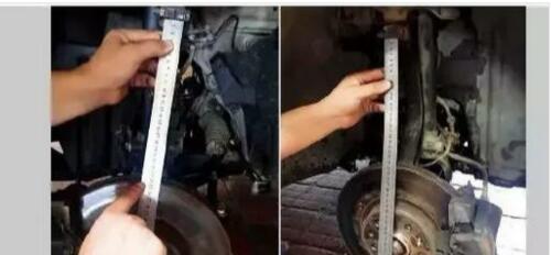 2.與車主溝通了解到,該車因事故撞到輪胎,更換了輪胎、下擺臂、減振器等零部件,所以我們仔細(xì)檢查了這些零部件的安裝情況。