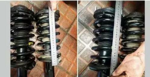 通過檢查發(fā)現(xiàn),檢查發(fā)現(xiàn)之前更換的下擺臂、減振器的尺寸與原車的不一致,如圖2、3所示。