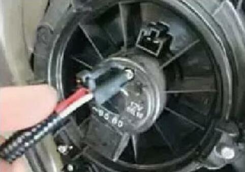 拆下后鼓風(fēng)機(jī)處的內(nèi)飾板,拔下鼓風(fēng)機(jī)的電源插頭,用萬(wàn)用表檢測(cè)后鼓風(fēng)機(jī)的線圈電阻為3.5Ω,符合要求,初步確定后鼓風(fēng)機(jī)沒(méi)有損壞。