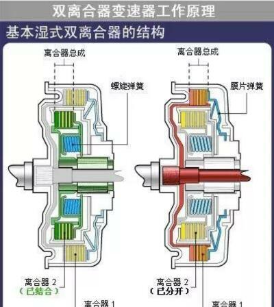 對(duì)比之下,雙離合器變速器使用兩個(gè)離合器,但沒有離合器踏板。先進(jìn)的電子系統(tǒng)和 液壓系統(tǒng)像控制標(biāo)準(zhǔn)自動(dòng)變速器那樣對(duì)離合器進(jìn)行控制。 但在雙離合器變速器中,各離合器單獨(dú)運(yùn)轉(zhuǎn)。 一個(gè)離合器控制奇數(shù)擋(一擋、三擋、五擋和倒擋),另一個(gè)離合器控制偶數(shù)擋(二擋、四擋和六擋)。 這樣,不需要中斷從發(fā)動(dòng)機(jī)到變速器的動(dòng)力傳送就可以換擋。