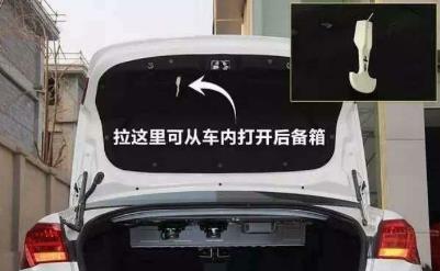 很多車型在后備箱中都裝有開關(guān),危急時刻可以放倒后排座椅,爬到后備箱中,通過開關(guān)開啟后備箱逃生。不過并不是所有的車型都有這個裝置,而且不同車型這個裝置的位置和開啟方法也是不同的,建議大家買車之后就先了解一下。當(dāng)然最好的話,在車內(nèi)放個安全錘,有備無患嘛!