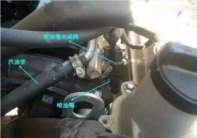 將汽油分配到各個噴油嘴上,它的下面連接的就是噴油嘴,都被擋住了看不見。