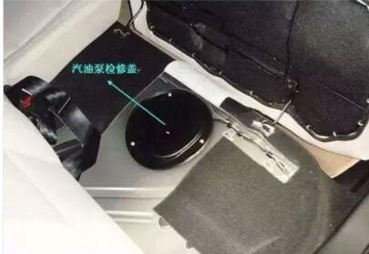 再來看看汽油泵,后排座椅掀開后,會看到這樣一個黑色的蓋子,它的下面就是汽油泵。