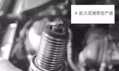 懷疑可能是4缸燃燒不良,導(dǎo)致發(fā)動(dòng)機(jī)怠速抖動(dòng)。拆下四個(gè)噴油器、四個(gè)火花塞,發(fā)現(xiàn)4缸火花塞積炭嚴(yán)重(下圖)。清洗噴油器并更換火花塞,故障依舊。將3缸與4缸點(diǎn)火線圈對(duì)換,故障碼存儲(chǔ)仍然是4缸不發(fā)火。