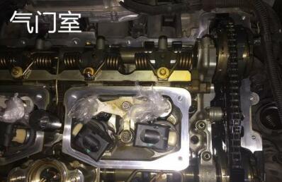 拆下氣門室罩蓋,氣門室就變的一覽無余了,需要把殘留的油泥全部清除掉才行。(機(jī)油的品質(zhì)不錯(cuò),我都沒怎么清洗,可見氣門室的干凈程度。)