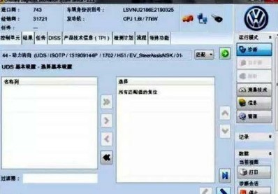 2. 再次進(jìn)入“44- 動(dòng)力轉(zhuǎn)向”,進(jìn)行“控制單元自診斷”,選擇“基本設(shè)置”,將“所有匹配值的復(fù)位”選入右側(cè)選擇框,點(diǎn)擊進(jìn)入下一步( 圖2)。