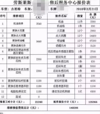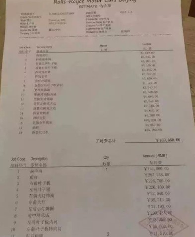 對(duì)于發(fā)生事故后,都會(huì)報(bào)保險(xiǎn),但是在維修的時(shí)候,你可以找任何的修理店,但是在定損的時(shí)候保險(xiǎn)公司覺(jué)得你那些地方改怎么修的。對(duì)于這種豪車來(lái)說(shuō),你要修補(bǔ)一下或者是噴漆,這種的工時(shí)費(fèi)按照勞斯萊斯的售后來(lái)說(shuō),是非常昂貴的,比如保險(xiǎn)杠磕了一個(gè)洞,要修補(bǔ),可以修補(bǔ),但是要手工費(fèi),有工時(shí)費(fèi),要拆解費(fèi),要材料費(fèi),加起來(lái)后你會(huì)發(fā)現(xiàn),這些費(fèi)用已經(jīng)遠(yuǎn)遠(yuǎn)超過(guò)了重新買一個(gè)新的保險(xiǎn)杠了。