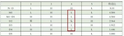 表1 換擋電磁閥狀態(tài)和傳動比