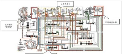 最后查看油路圖(如圖2所示),圖中的紅圈處是壓力開關(圖中有幾個油壓開關排列順序是4、3、1、5)。
