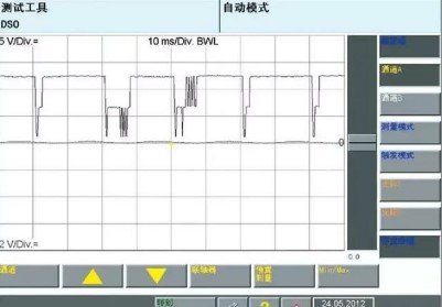 測量相關(guān)線路連接良好,不存在斷路或短路情況,利用VAS5051B示波儀功能測量反饋信號,如圖2所示。