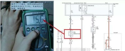 故障診斷:據(jù)車主反映,車子最近出現(xiàn)開啟空調(diào)系統(tǒng),按下A/C開關(guān)后,出自然風(fēng),沒(méi)有冷氣。接修車輛后,驗(yàn)證故障現(xiàn)象,啟動(dòng)發(fā)動(dòng)機(jī),空調(diào)系統(tǒng)調(diào)至制冷狀態(tài),開啟A/C開關(guān),經(jīng)過(guò)很長(zhǎng)一段時(shí)間后,空調(diào)依舊出自然風(fēng),空調(diào)不制冷,故障現(xiàn)象確實(shí)存在。經(jīng)初步檢查發(fā)現(xiàn),開啟A/C開關(guān)后,壓縮機(jī)電磁離合器沒(méi)有吸合,空調(diào)系統(tǒng)不能正常制冷,由故障現(xiàn)象及初步檢查結(jié)果分析可知,此車故障現(xiàn)象是由制冷系統(tǒng)(壓縮機(jī))不工作導(dǎo)致的空調(diào)系統(tǒng)工作異常。