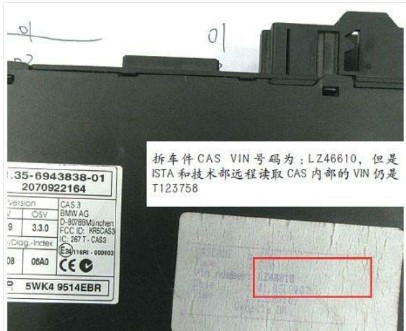 拆下CAS,發(fā)現(xiàn)CAS已經(jīng)被更換成了拆車件(如圖3所示),檢查鑰匙也已經(jīng)被更換。