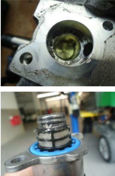 4、 通過(guò)拆解檢查發(fā)現(xiàn)燃油泵計(jì)量閥的濾網(wǎng)處有很多高壓燃油泵磨出來(lái)的鐵銷,最終判定是高壓燃油泵損壞,需要更換高壓燃油泵、高壓油軌、6個(gè)噴油嘴。