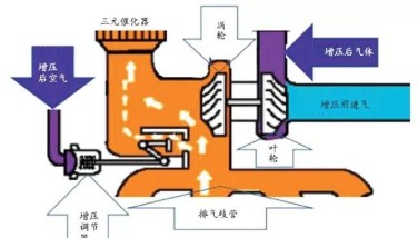 首先了解下EA211系列發(fā)動(dòng)機(jī)上所采用的渦輪增壓器,該渦輪增壓器相對(duì)于之前第二代的渦輪增壓,體積更小,結(jié)構(gòu)也更簡單。同時(shí)渦輪轉(zhuǎn)速也更快(第二代最高100000r/min,而現(xiàn)款可達(dá)200000r/min),且保留了N75增壓壓力調(diào)節(jié)電磁閥,而取消了N249內(nèi)循環(huán)電磁閥的控制,因此控制方面減少了低工況時(shí)的旁通,只保留了高工況的放氣泄壓。結(jié)構(gòu)簡單了,但由此可能造成進(jìn)氣的波動(dòng)引起噪聲,特在進(jìn)氣管部分進(jìn)行了更改,其內(nèi)部添加了專為降低噪音的結(jié)構(gòu)腔。