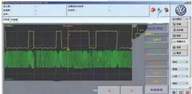 波形規(guī)則完好,無(wú)其他異常情況。說(shuō)明凸輪軸位置傳感器以及曲軸位置傳感器都在正常工作,沒(méi)有線(xiàn)路和傳感器本身等故障原因。
