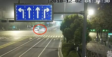 12月2日凌晨4時30分許,江蘇鹽城,一輛紅色轎車停在路口等紅燈,不料一停就是40分鐘。